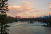 Zachód słońca nad rzeką Athabasca w Parku Narodowym Jasper w Kanadzie