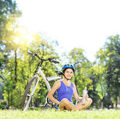 sportowe górskie Kolarstwo dziewczyna relaks w łąki