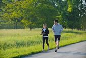 Bieganie sprawny młoda para działa pole łąka