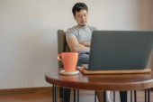 Zdjęcie "widok z boku szczęśliwy człowiek w okularach wpisując na laptopie z pustym ekranem w pobliżu pustego notebooka i filiżanki kawy" może być wykorzystywane do celów osobistych i komercyjnych zgodnie z warunkami zakupionej licencji Royalty-free. Obraz jest dostępny do pobrania w jakości wysokiej rozdzielczości do 5760x3840.
