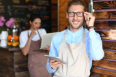Zdjęcie "Właściciele firm pracujących z laptopem i tabletem w kawiarni" może być wykorzystywane do celów osobistych i komercyjnych zgodnie z warunkami zakupionej licencji Royalty-free. Obraz jest dostępny do pobrania w jakości wysokiej rozdzielczości do 5760x3840.