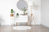 Zdjęcie "Wnętrze świetlicy z regałami, lustrem i komodą" może być wykorzystywane do celów osobistych i komercyjnych zgodnie z warunkami zakupionej licencji Royalty-free. Obraz jest dostępny do pobrania w jakości wysokiej rozdzielczości do 5760x3840.