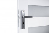 Door handles elements close up. Door handle on white closed doors in modern loft style in interior. Concept of accessories for interior design home interior of apartment or office.
