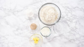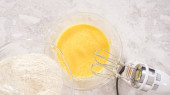 Leżeć płasko. Składniki mieszania z mikserem do rąk w dużej misce do mieszania upiec ciasto ajerkoniak.