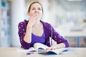 w bibliotece - ładne, kobiece studenta z laptopa i książki wo