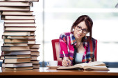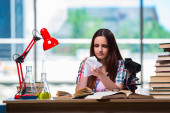Uczennica przygotowująca się do egzaminów z chemii