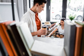 Zdjęcie "wazon stiukowy i dzbanek z narzędziami artystycznymi w pobliżu książek i łuski vintage na szorstkim parapecie z plamami farby " może być wykorzystywane do celów osobistych i komercyjnych zgodnie z warunkami zakupionej licencji Royalty-free. Obraz jest dostępny do pobrania w jakości wysokiej rozdzielczości do 5760x3840.