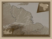 Zdjęcie "Mangghystau, region Kazachstanu. Mapa elewacji kolorowe w sepia dźwięki z jeziorami i rzekami. Pomocnicze mapy położenia narożnika" może być wykorzystywane do celów osobistych i komercyjnych zgodnie z warunkami zakupionej licencji Royalty-free. Obraz jest dostępny do pobrania w jakości wysokiej rozdzielczości do 5760x3840.