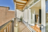 Zdjęcie "Widok z przodu budynków murowanych z małego balkonu z balustradami" może być wykorzystywane do celów osobistych i komercyjnych zgodnie z warunkami zakupionej licencji Royalty-free. Obraz jest dostępny do pobrania w jakości wysokiej rozdzielczości do 5760x3840.
