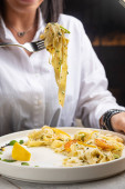 Zdjęcie "makaron z owocami morza w restauracji" może być wykorzystywane do celów osobistych i komercyjnych zgodnie z warunkami zakupionej licencji Royalty-free. Obraz jest dostępny do pobrania w jakości wysokiej rozdzielczości do 5760x3840.