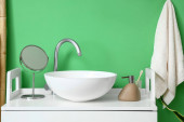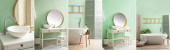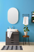 Zdjęcie "Wnętrze stylowej łazienki z lustrem, regałami i regałami" może być wykorzystywane do celów osobistych i komercyjnych zgodnie z warunkami zakupionej licencji Royalty-free. Obraz jest dostępny do pobrania w jakości wysokiej rozdzielczości do 5760x3840.