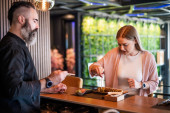 Dojrzała kobieta kupuje towary w sklepie z owocami i warzywami.