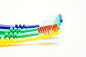 kolorowe szczoteczka do zębów na zielonym tle