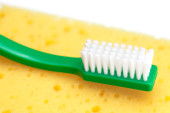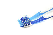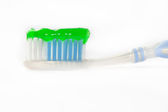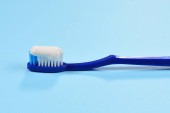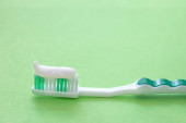 niebieski szczoteczki do zębów i ząb wklej na zielonym tle