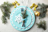 Niebieskie i białe Boże Narodzenie tabela stylowa na obrus szary tło