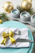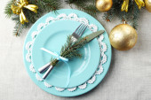 Zdjęcie "Niebieskie i białe Boże Narodzenie tabela stylowa na obrus szary tło" może być wykorzystywane do celów osobistych i komercyjnych zgodnie z warunkami zakupionej licencji Royalty-free. Obraz jest dostępny do pobrania w jakości wysokiej rozdzielczości do 5760x3840.
