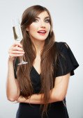 Uśmiechnięte dziewczyny przy lampce wina na tle światła