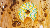 Zdjęcie "Pączek ma ugryzienie w kształcie ust. Czekoladowe pączki ozdobione kawałkami herbatników oreo. Pączki są na papierze ozdobionym naturalną czekoladą. Strzelanie makro i suwakiem. Koncepcja piekarnicza i spożywcza" może być wykorzystywane do celów osobistych i komercyjnych zgodnie z warunkami zakupionej licencji Royalty-free. Obraz jest dostępny do pobrania w jakości wysokiej rozdzielczości do 5760x3840.