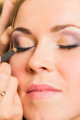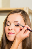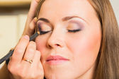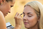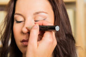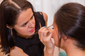 Wizażystka, robi makijaż dla modelu