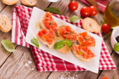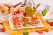Friselle z pomidorami wiśniowymi i rukolą.