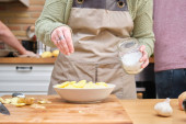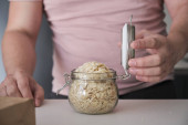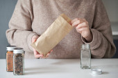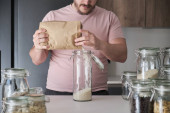 Zdjęcie "Nierozpoznany Latynos napełniający słoik chipsami bananowymi z papierowej torby. Żywność dostarczana luzem." może być wykorzystywane do celów osobistych i komercyjnych zgodnie z warunkami zakupionej licencji Royalty-free. Obraz jest dostępny do pobrania w jakości wysokiej rozdzielczości do 5760x3840.
