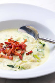 Zdjęcie "zupa cukiniowa z boczkiem w paski" może być wykorzystywane do celów osobistych i komercyjnych zgodnie z warunkami zakupionej licencji Royalty-free. Obraz jest dostępny do pobrania w jakości wysokiej rozdzielczości do 5760x3840.