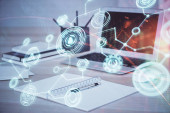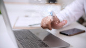 Technologia HR (zasoby ludzkie) .Technologie online i nowoczesne technologie upraszczające system zasobów ludzkich.Menadżer zasobów ludzkich sprawdza CV online, aby wybrać idealnego pracownika dla swojej firmy.
