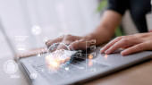 Zdjęcie "Technologia HR (zasoby ludzkie) .Technologie online i nowoczesne technologie upraszczające system zasobów ludzkich.Menadżer zasobów ludzkich sprawdza CV online, aby wybrać idealnego pracownika dla swojej firmy." może być wykorzystywane do celów osobistych i komercyjnych zgodnie z warunkami zakupionej licencji Royalty-free. Obraz jest dostępny do pobrania w jakości wysokiej rozdzielczości do 5760x3840.