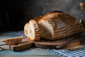 Domowej roboty krojone babeczki i dynie na rustykalnym stole