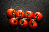 pomidory wiśniowe na łodydze, pomidory wiśniowe na czarnym tle