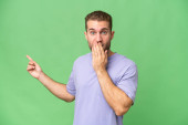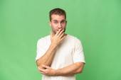 Zdjęcie "młody przystojny biały mężczyzna odizolowany na zielony chroma tło szczęśliwy i uśmiechnięty pokrycie usta z rąk" może być wykorzystywane do celów osobistych i komercyjnych zgodnie z warunkami zakupionej licencji Royalty-free. Obraz jest dostępny do pobrania w jakości wysokiej rozdzielczości do 5760x3840.