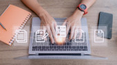 Zdjęcie "Koncepcja podpisu elektronicznego, przedsiębiorcy podpisują dokumenty elektroniczne na dokumentach cyfrowych, biuro bez dokumentów, podpisują przyszłe umowy biznesowe." może być wykorzystywane do celów osobistych i komercyjnych zgodnie z warunkami zakupionej licencji Royalty-free. Obraz jest dostępny do pobrania w jakości wysokiej rozdzielczości do 5760x3840.