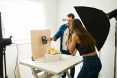 Zdjęcie "Atrakcyjna kobieta fotograf trzyma jej profesjonalny aparat fotograficzny i robi sesję zdjęciową mody" może być wykorzystywane do celów osobistych i komercyjnych zgodnie z warunkami zakupionej licencji Royalty-free. Obraz jest dostępny do pobrania w jakości wysokiej rozdzielczości do 5760x3840.