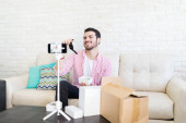 Zdjęcie "Uśmiechnięty model kaukaski pozowanie w profesjonalnym studio z oświetleniem i aparatem fotograficznym" może być wykorzystywane do celów osobistych i komercyjnych zgodnie z warunkami zakupionej licencji Royalty-free. Obraz jest dostępny do pobrania w jakości wysokiej rozdzielczości do 5760x3840.
