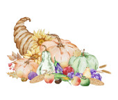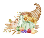 Święto Dziękczynienia akwarele elementy, indyk, dynie i liście izolowane