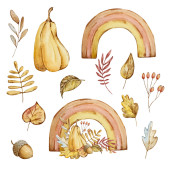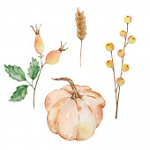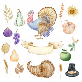 Święto Dziękczynienia elementy akwareli, róg obfitości, dynie i owoce izolowane