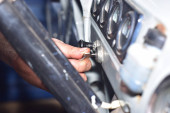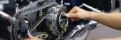 Zdjęcie "Zbliżenie złotej rączki mechanik naprawy części transportu motocykla z kluczowym wyposażeniem. Przystanek dołu dla pojazdu do naprawy. Koncepcja usługi utrzymania" może być wykorzystywane do celów osobistych i komercyjnych zgodnie z warunkami zakupionej licencji Royalty-free. Obraz jest dostępny do pobrania w jakości wysokiej rozdzielczości do 5760x3840.