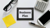biznes plan słowa w pobliżu wyróżnień i okulary, koncepcja biznesowa