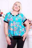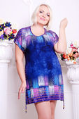 Blond plus size kobieta w ubrania