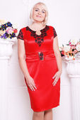 Blond plus size kobieta w ubrania
