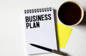 biznes plan słowa w pobliżu okulary i pióra, koncepcja biznesowa