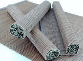 zestaw trzech podkładka Bambusowa walcowane na białym tle