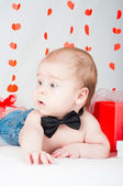 Zdjęcie "Piękny chłopczyk w muszka i z czerwonym sercem" może być wykorzystywane do celów osobistych i komercyjnych zgodnie z warunkami zakupionej licencji Royalty-free. Obraz jest dostępny do pobrania w jakości wysokiej rozdzielczości do 5760x3840.