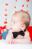 Zdjęcie "Piękny chłopczyk w muszka i z czerwonym sercem" może być wykorzystywane do celów osobistych i komercyjnych zgodnie z warunkami zakupionej licencji Royalty-free. Obraz jest dostępny do pobrania w jakości wysokiej rozdzielczości do 5760x3840.