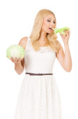 Młoda kobieta trzymając miskę brukselka