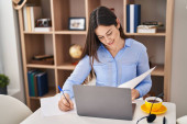 Młoda artystka za pomocą touchpad rysunek na notatniku w studio sztuki