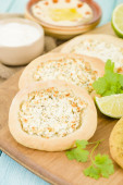Zdjęcie "Kupie płaski chleb i przyprawy na stole" może być wykorzystywane do celów osobistych i komercyjnych zgodnie z warunkami zakupionej licencji Royalty-free. Obraz jest dostępny do pobrania w jakości wysokiej rozdzielczości do 5760x3840.