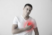 Dojrzałe mężczyzna mając zawał serca na lekkim tle