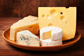 ser, wino i inne smaczne rzeczy na drewnianym stole