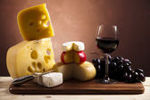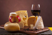ser, wino i inne smaczne rzeczy na drewnianym stole